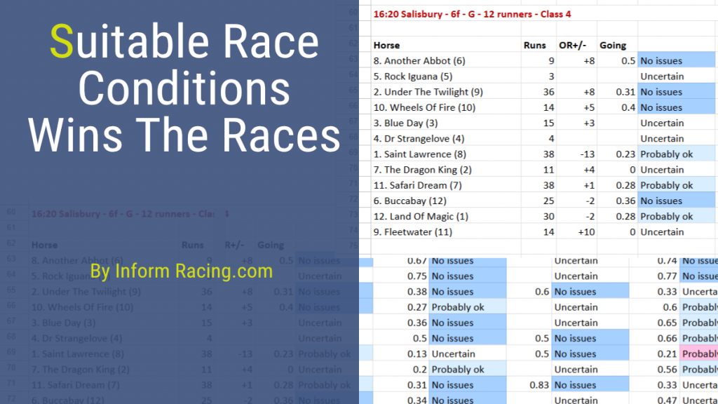 What I am trying to do, is find out when a horse is suited by the conditions and highlight these a little bit easier than having to spend hours going through a hundered websites and pages of form.